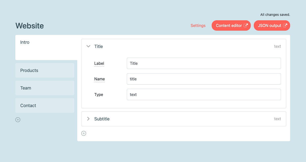 Justfields returns plain JSON. You already know how to work with that and can use it in any project, in any way you want. Here is the JSON output for the example above: